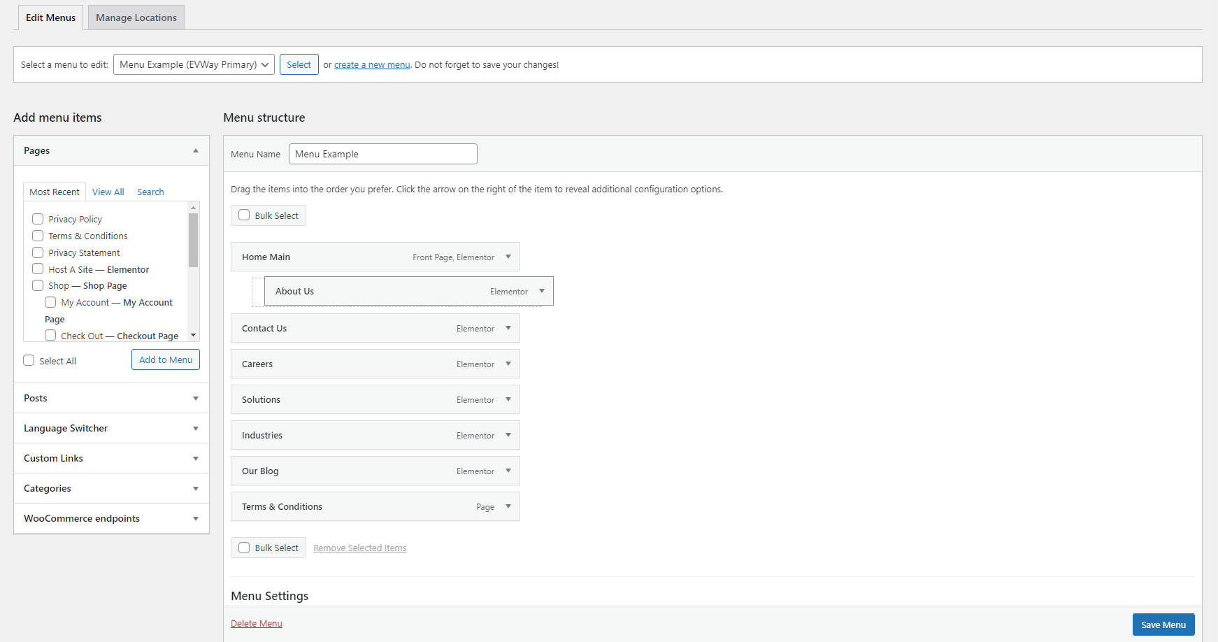 5\. Click the **Save Menu** button in the Menu Editor to save your changes.