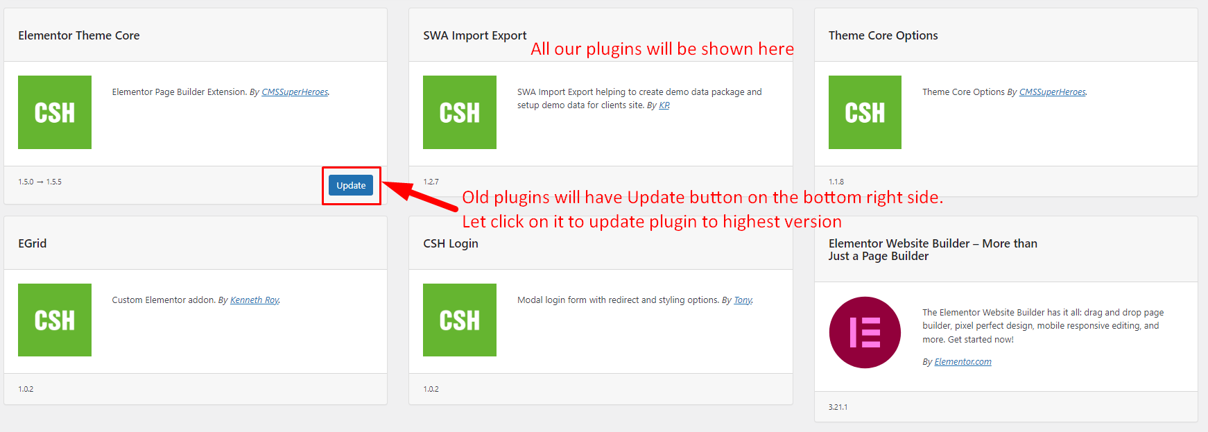 2. On the Plugin panel, click the Update button below the old plugins.