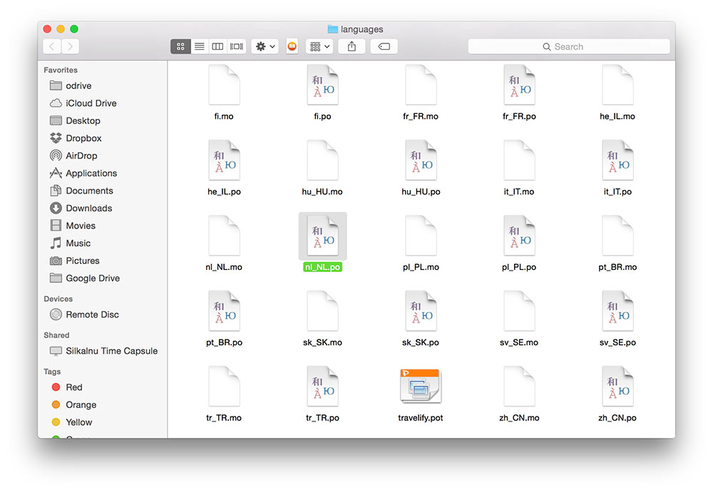 Please note: Default language file extension is .pot (such as organic.pot... ) but you have to use .po in order to make your translation work. Also Poedit application will create .mo and it needs to be included in languages folder as well.