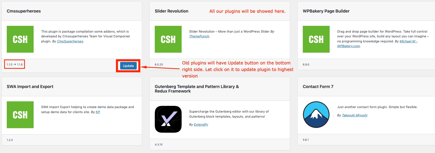 2. On the Plugin panel, click the Update button below the old plugins.