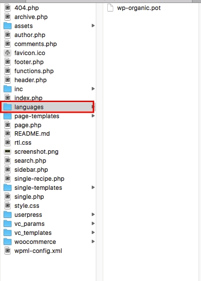You will see file there that you can use for translation (theme name.pot). Please consider that the name of these files should be the same as your default language code which you have set in wp-config.php file explained at the beginning of tutorial.